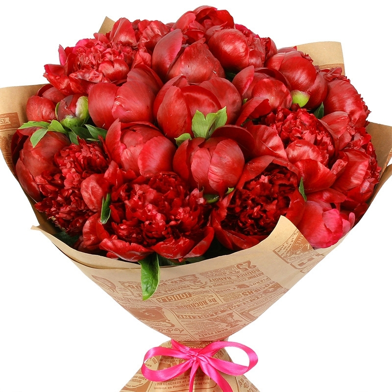 Букет из 25 красных пионов в крафте