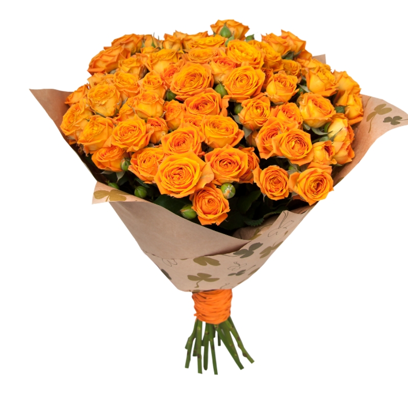 Букет из 17 оранжевых кустовых роз в крафте
