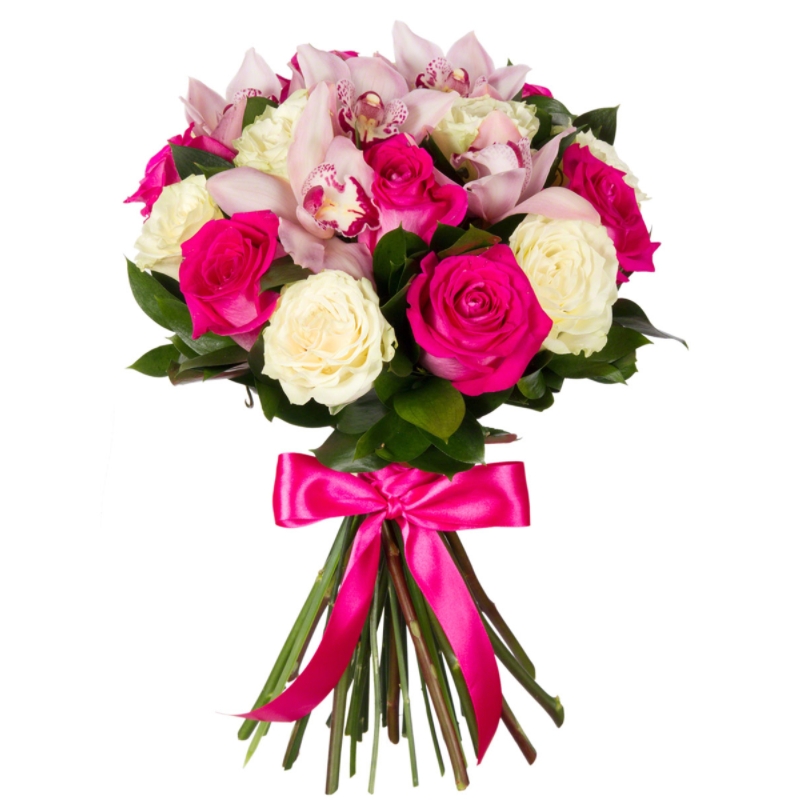 Букет из роз и орхидей "Скромное обаяние"