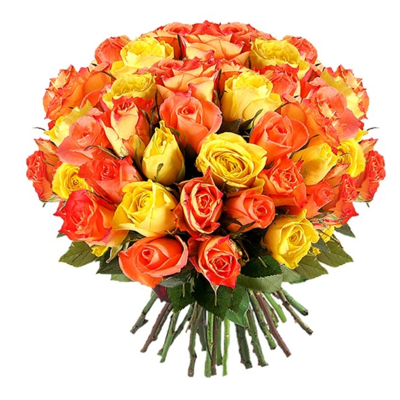 Букет из 45 оранжевых и желтых роз ( 40 см,)