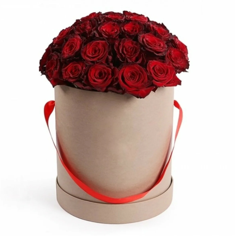 Букет состоит из 31 красная роза, коробка.