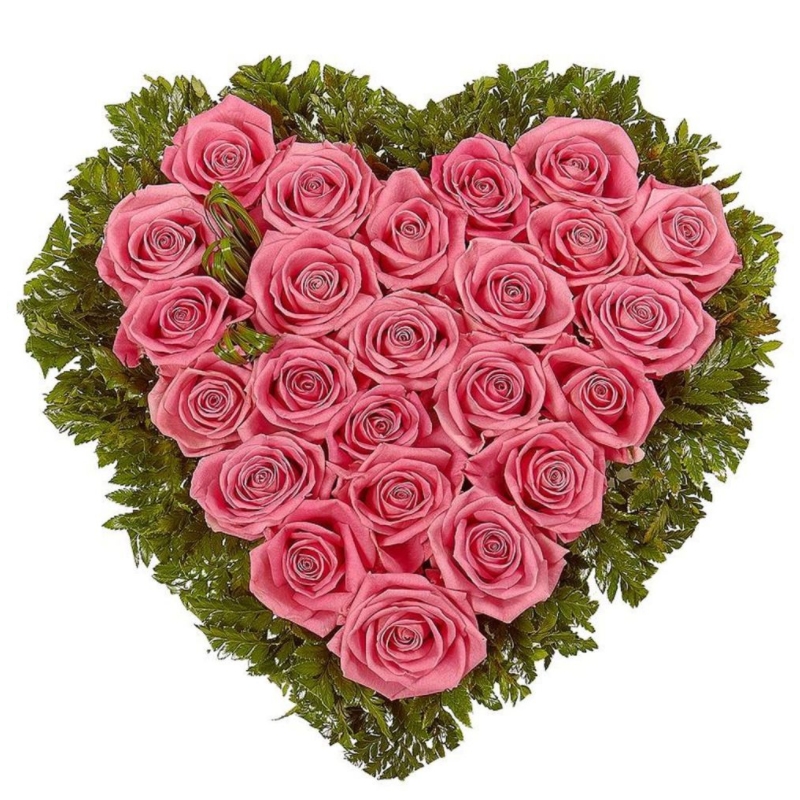 Сердце из 25 розовых роз