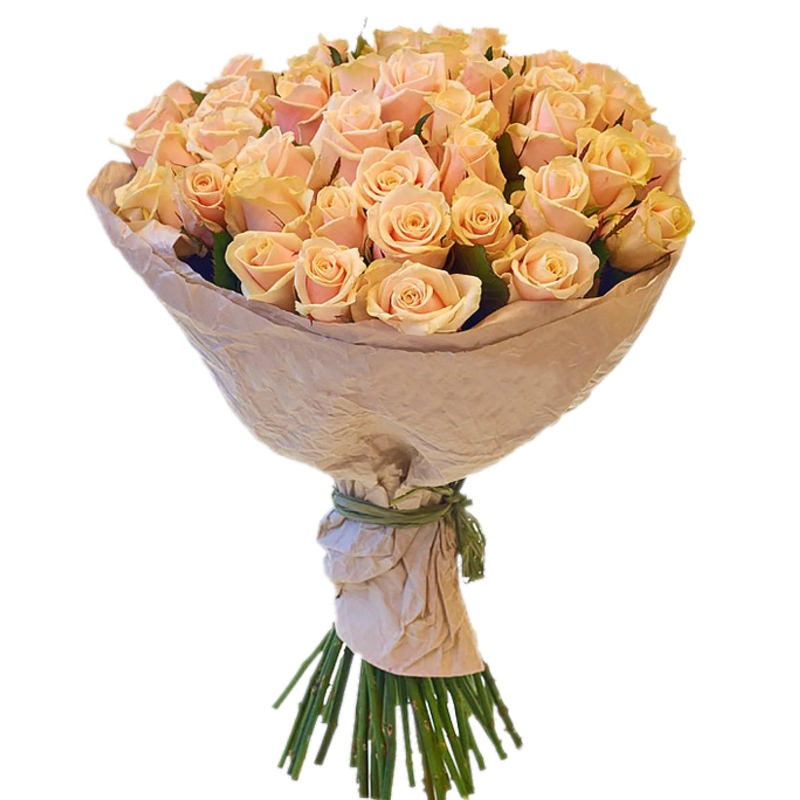 Букет состоит из 45 кремовых роз, крафт, атласная лента.