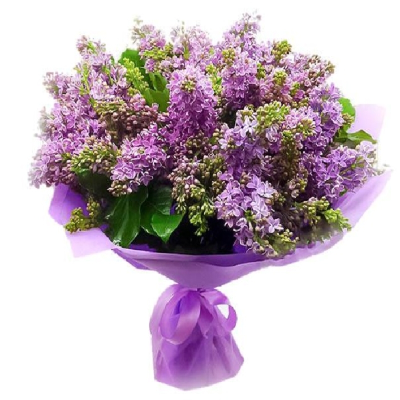 Букет состоит из 19 веток сирени, красивая упаковка, атласная лента.